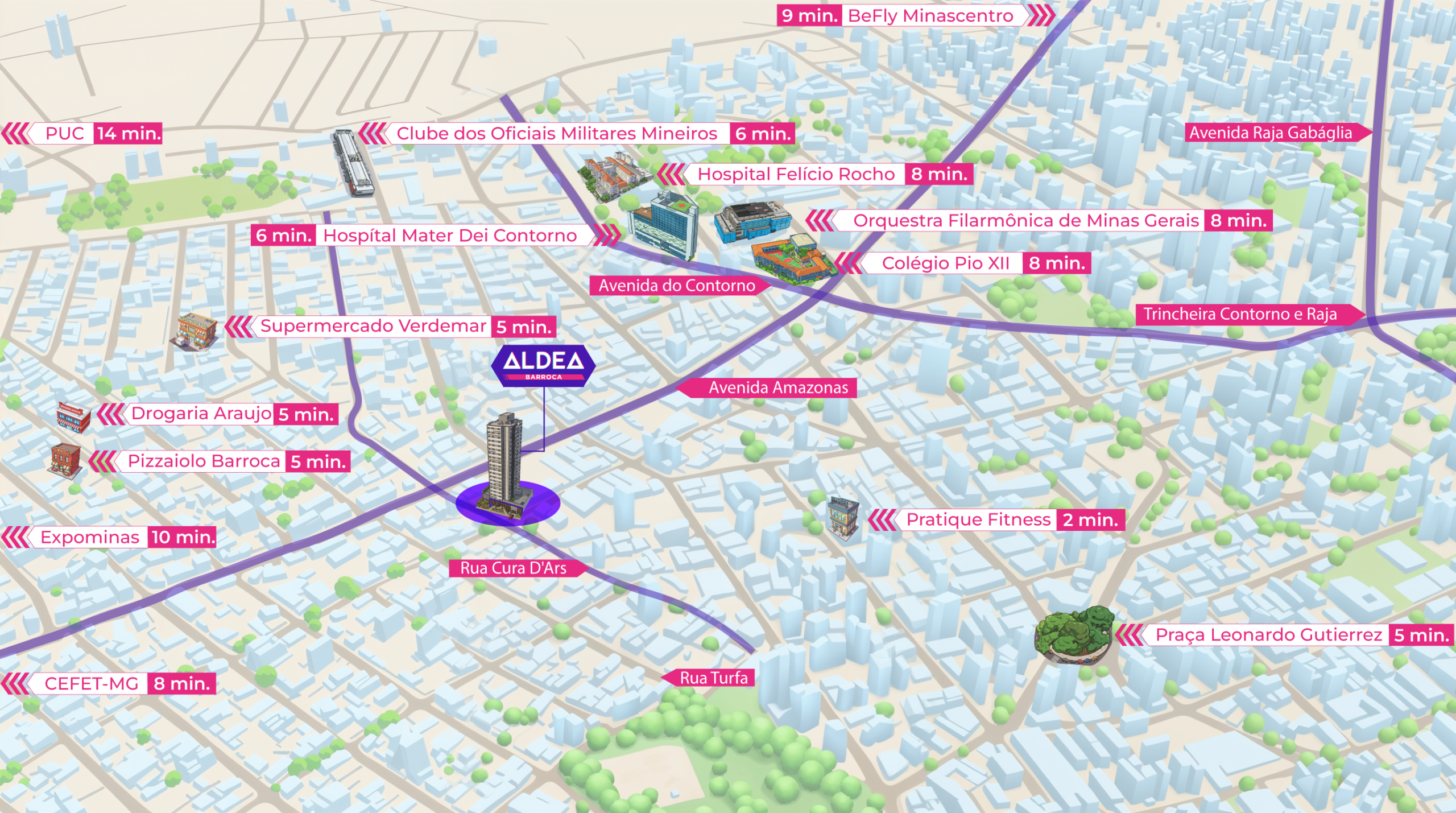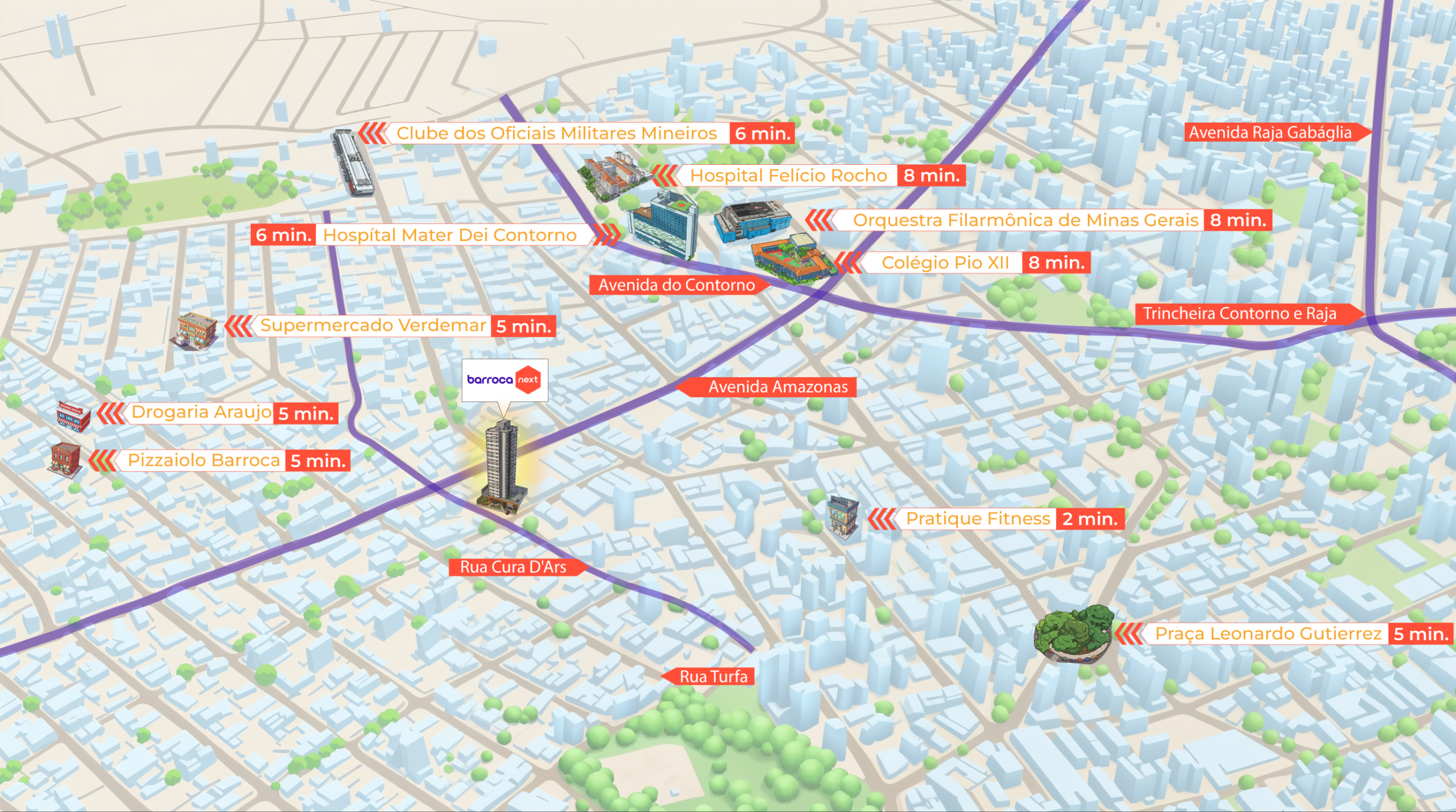 Fácil acesso à Av. Amazonas, Av. Raja Gabaglia, Av. Silva Lobo e Av. do Contorno